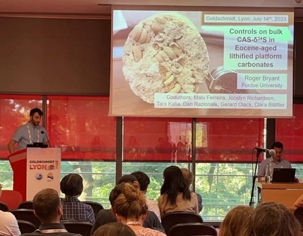 7/15/23 – Roger attended the Goldschmidt conference in Lyon, France. He presented an invited talk on diagenesis and geochemical proxy development in Eocene carbonates from Florida and the Bahamas.