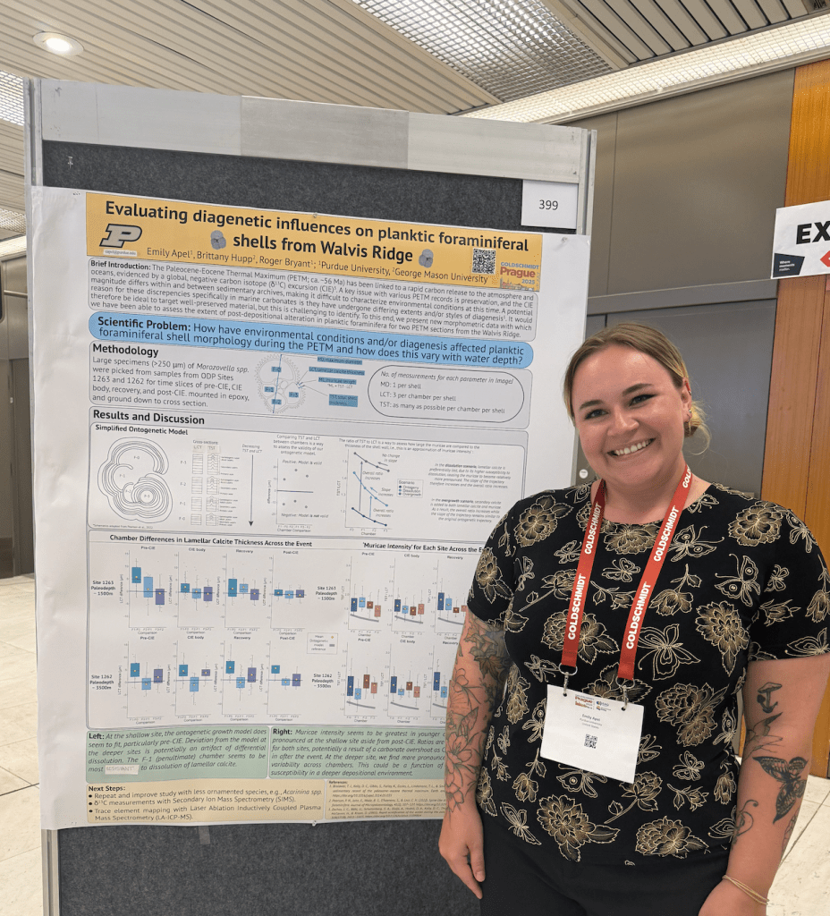 This Summer, Emily traveled to the Annual Goldschmidt Conference in Prague, where she presented the latest research results on diagenetic influences on foraminifera from the Paleocene-Eocene Thermal Maximum.